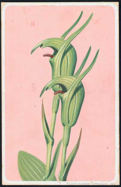 The blunt-tongued greenhood orchid is one of sixteen Australian wildflowers that feature in a set of illustrations by war artist turned commercial illustrator, Ralph Malcolm Warner.