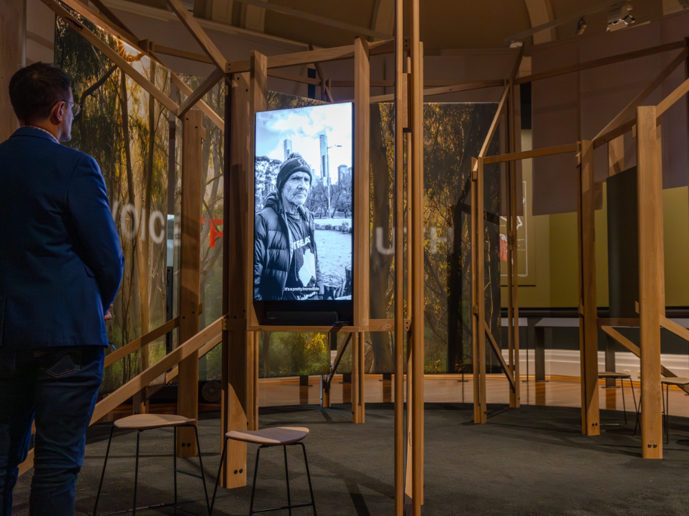 A central space in the exhibition, inspired by the majestic tree depicted in Burtt’s painting, encourages contemplation and conversation. Videos displayed in this space share the diverse perspectives of Victoria’s Aboriginal community, providing a link between the manuscripts of the past and the path to Treaty today and into the future.